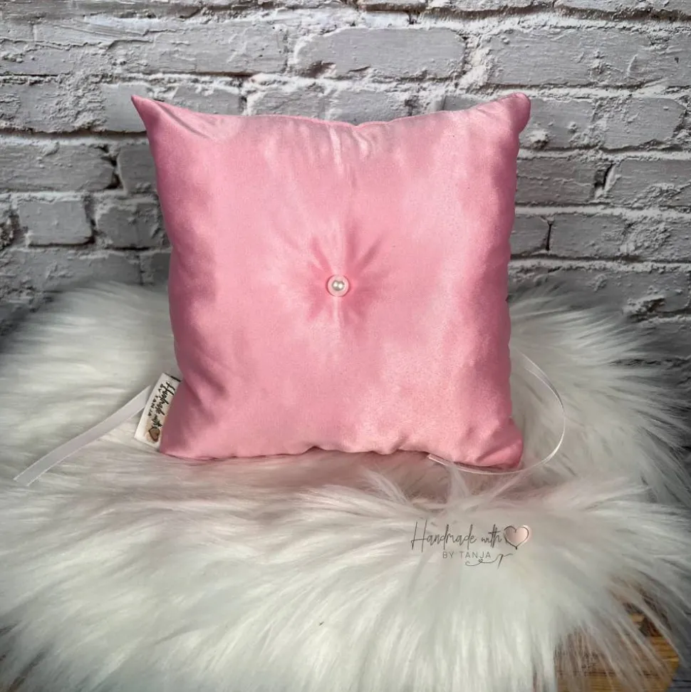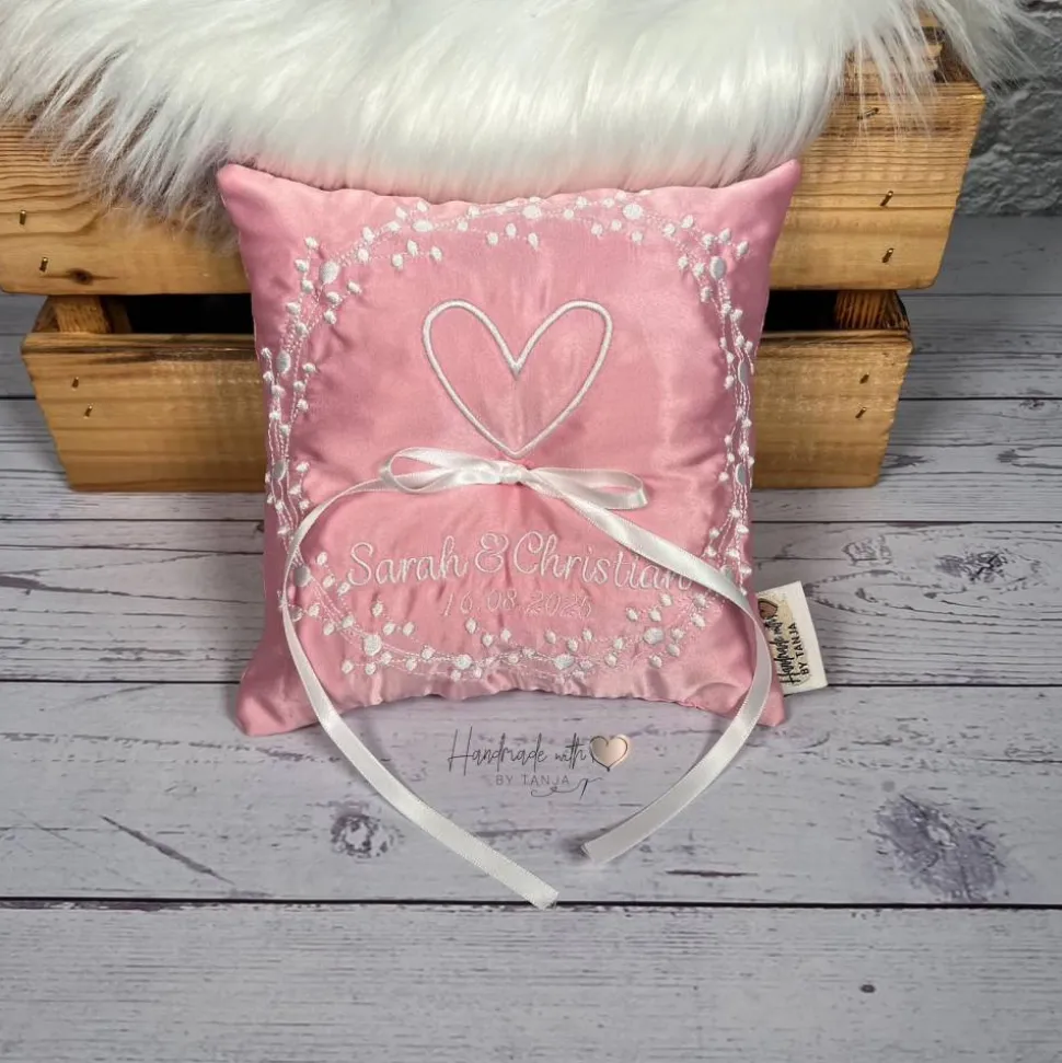 Dieses wunderschöne Ringkissen in rosa ist der perfekte Begleiter für den schönsten Tag im Leben. Das Kissen ist aus hochwertigem Stoff gefertigt. In die Mitte habe ich eine Satinschleife befestigt. Dort finden die Eheringe ihren Platz und können dort am besten mit einem leichten Knoten befestigt werden.