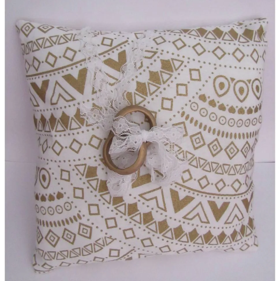 Das goldene Muster lässt das Kissen besonders schön glänzen.