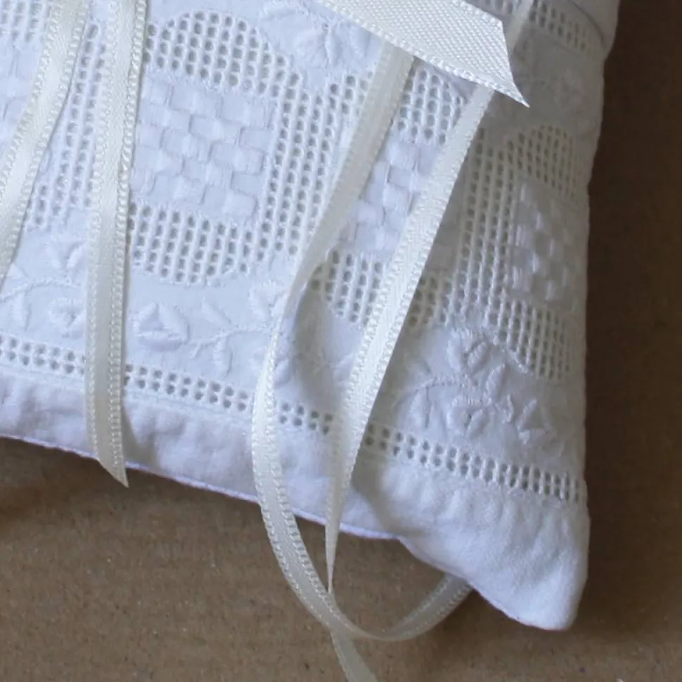 Ringkissen Upcycling weiß / cremeweiß, 14 x 14 cm /// ABVERKAUF