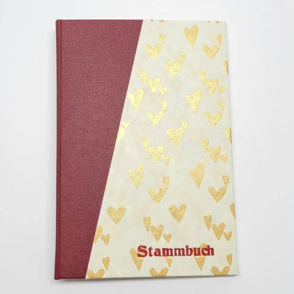 Vorne ist im Heißprägeverfahren in dunkelrot Stammbuch aufgeprägt.