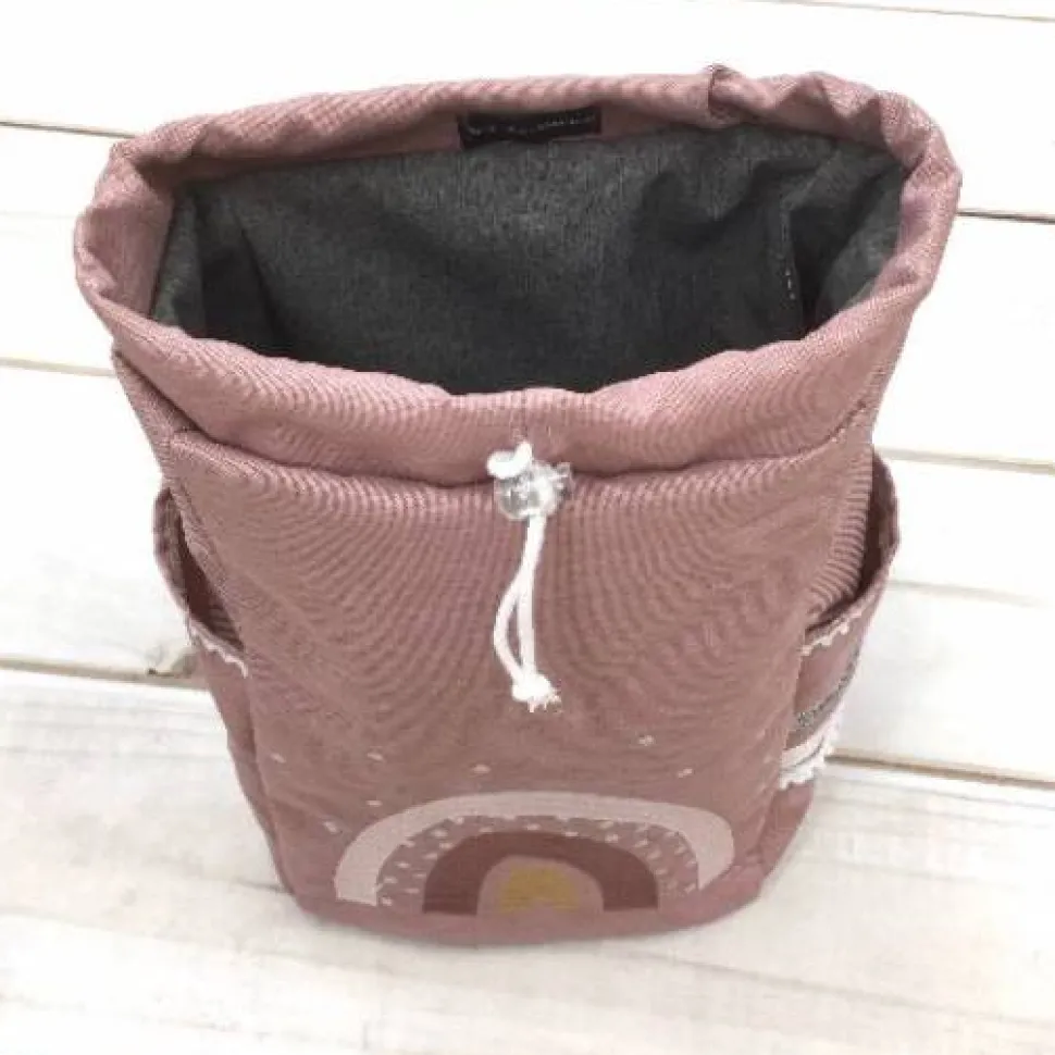 – am oberen Rand (unter der Klappe mit dem Namen) wird der Rucksack mit einer Kordel inkl. Kordelstopper geschlossen