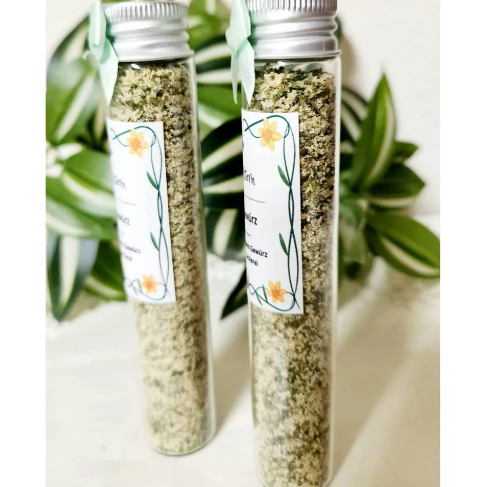 Pro Artikel erhalten Sie ein Reagenzglas mit Schraubverschluss und einer Rühreigewürzmischung