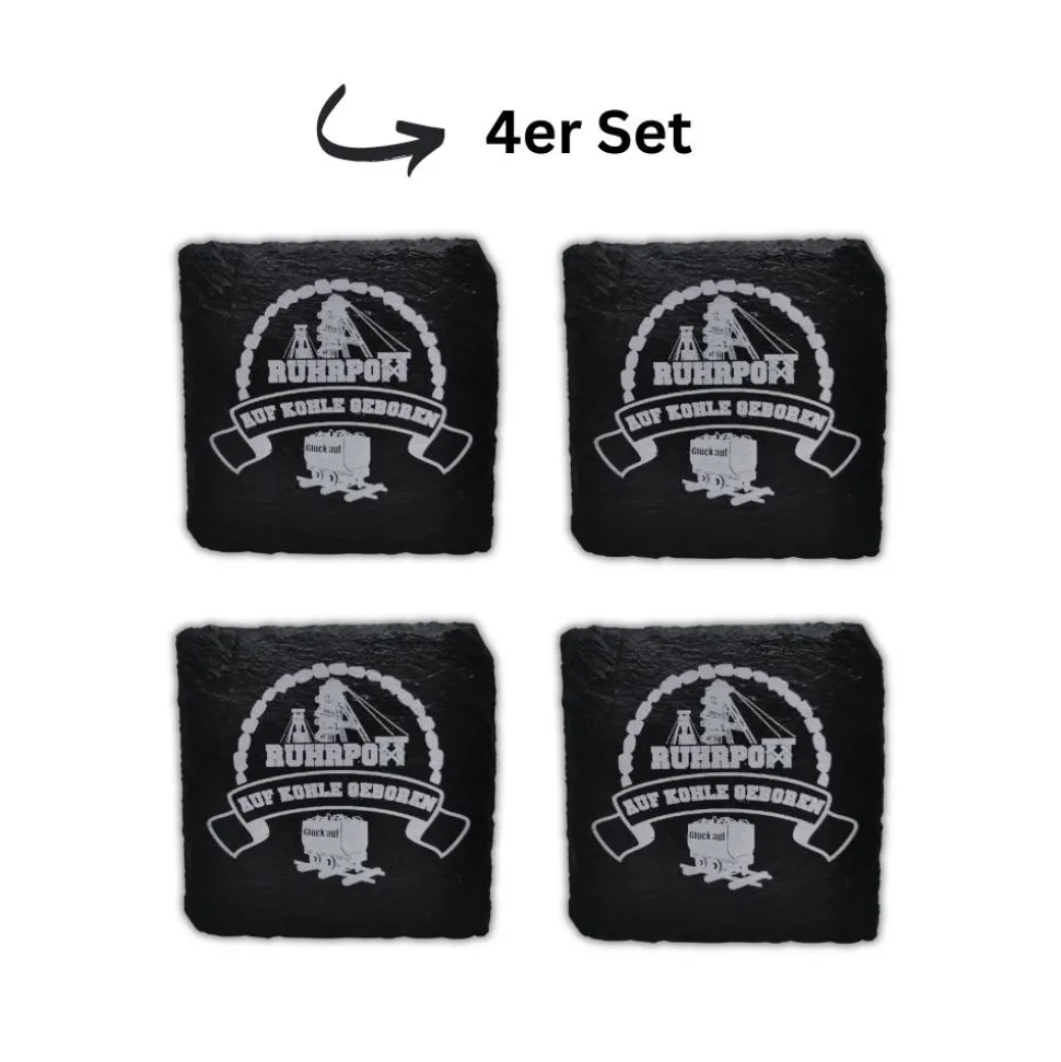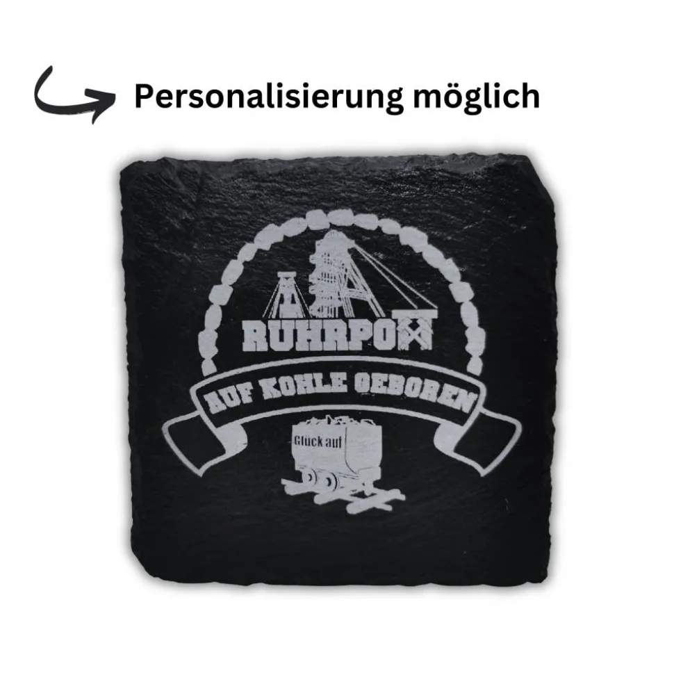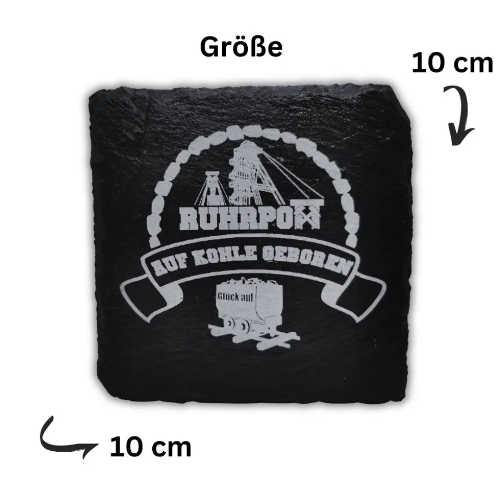 RuhrPott Untersetzer aus Schiefer, Lasergravur, Glück Auf, Kommaregeln, Kumpel, Förderturm, Zollverein, Prosper Haniel