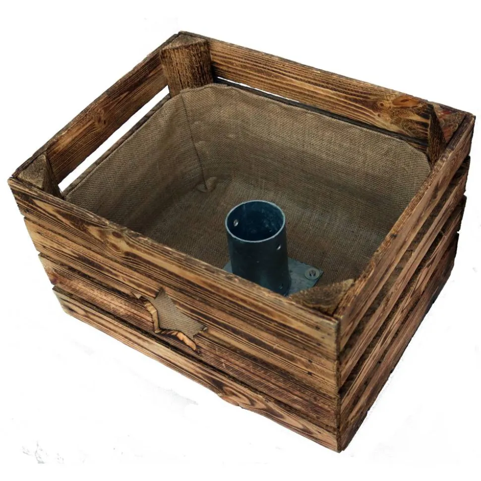Die Holzkiste, mit ausgeschnitztem Stern, ist geflammt, so entsteht eine rustikale, ländliche und zugleich warme Ausstrahlung.