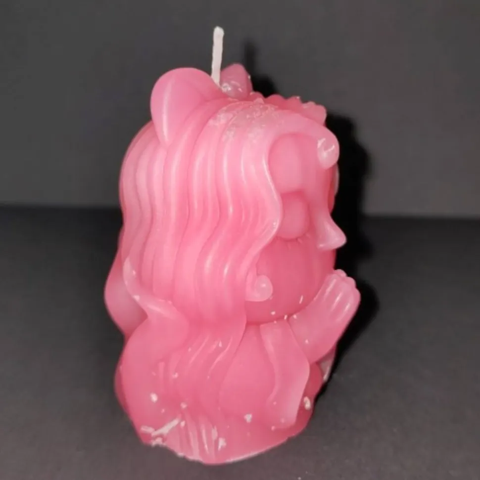 Kerzen kennst du. Aber bestimmt nicht so! Diese außergewöhnliche Figur in zartem Pink verbindet Spiritualität mit Nachhaltigkeit. Die Meditationskerze zeigt eine betende Gestalt mit geschlossenen Augen, fließendem Haar und einer sanften Aura, die sofort Ruhe und Harmonie ausstrahlt.