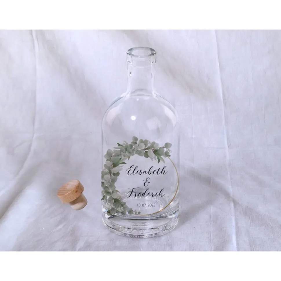 Die Flasche ist 19 cm hoch undn hat einen Durchmesser von 8,5 cm. Sie kommt mit einem Holzkopfkorken der nicht bedruckt wird.