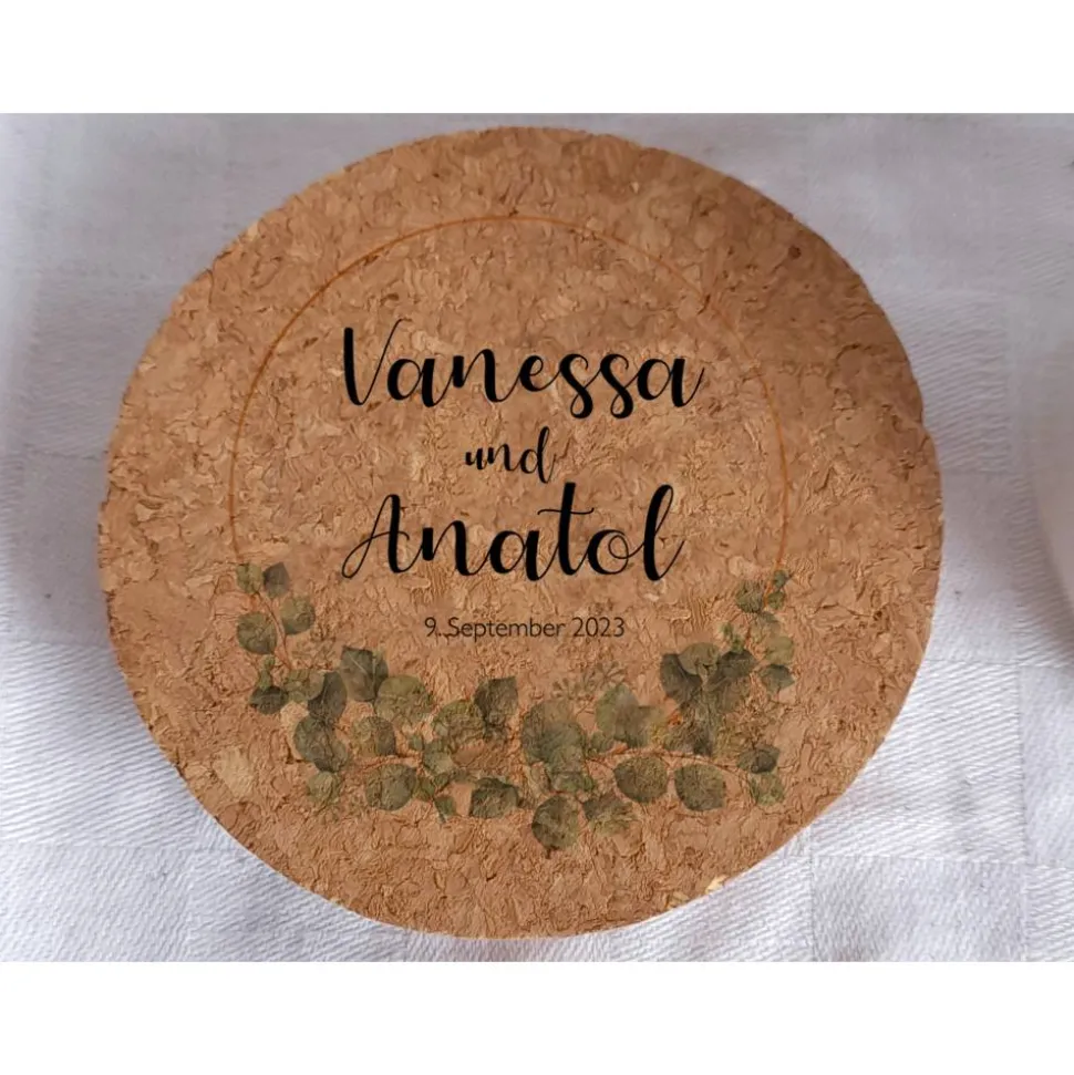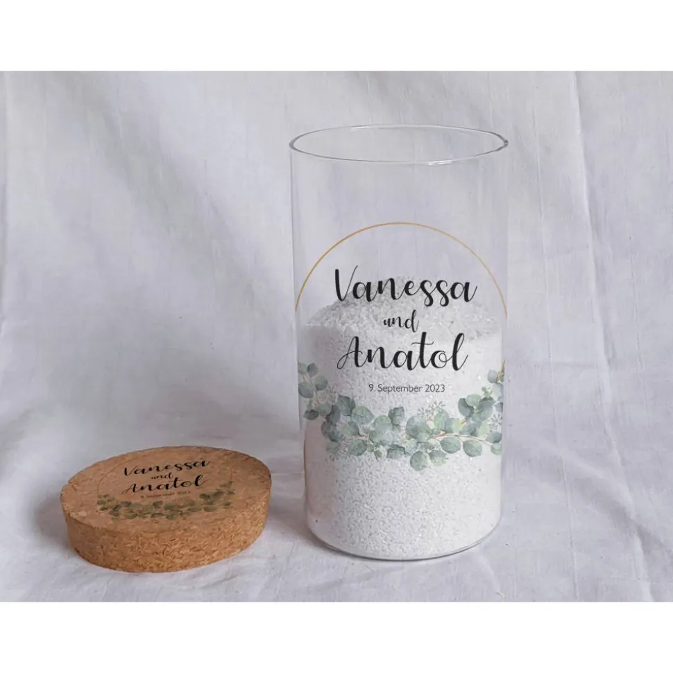 Sandzeremonie Glas mit Holzdeckel Hochzeitsbrauch Windlicht Design Eukalyptus unten