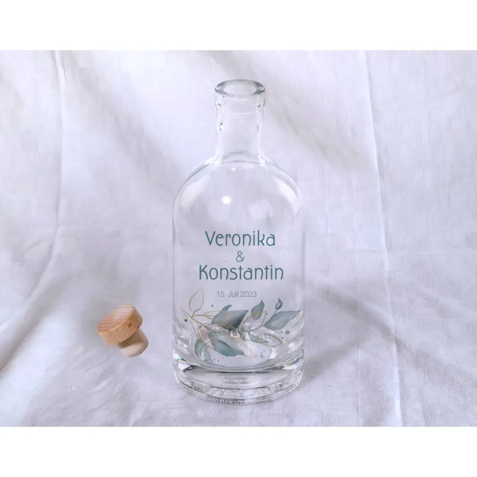 Die Flasche ist 19 cm hoch und hat einen Durchmesser von 8,5 cm. Sie kommt mit einem Holzkopfkorken der nicht bedruckt wird.