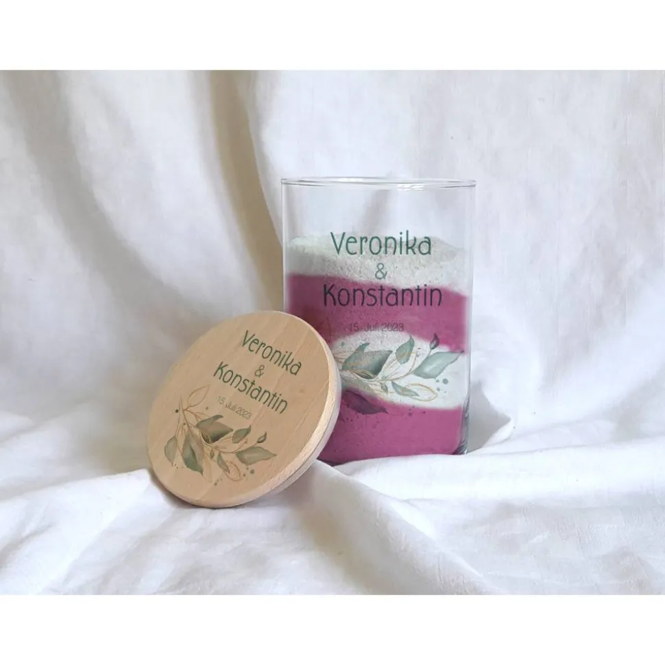 Bei Kerzensand bekommen Sie noch einen Docht dazu, sodass Sie direkt nach der Sandzeremonie Ihre individuelle Hochzeitskerze entzünden können.