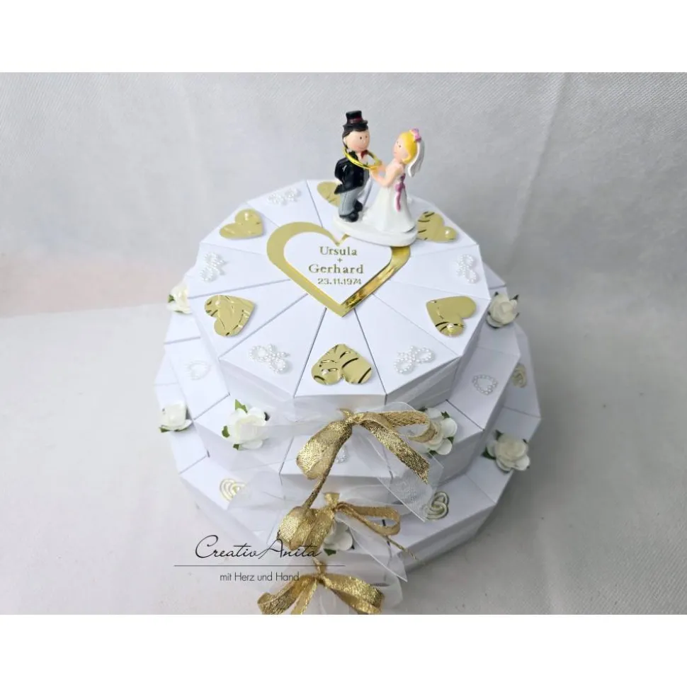 3×12 einzelne Tortenstücke, jedes einzeln nach Belieben befüllbar (z. B. mit Geld, Gutschein, Mini-Schafmilchseifen, Sprüchen, Süssigkeiten usw.)