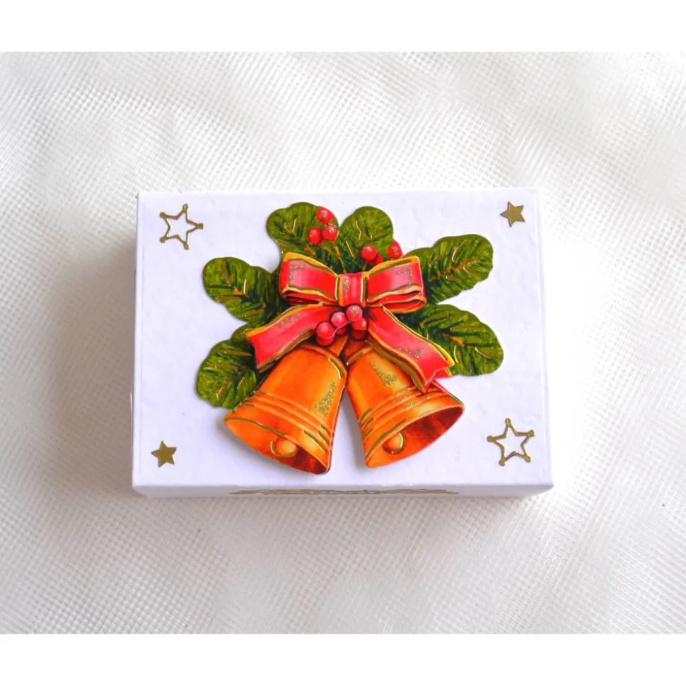 Schiebeschachtel (Nr. W5) mit 3D-Motiv Glocken und „Frohe Weihnachten“ auf der Seite. Sie eignet sich zum Verschenken von Geld, Gutschein, Schmuck, Süßigkeiten und sonstigen kleinen Geschenken. Die Schachtel ist aufschiebbar und kann wieder verwendet werden.