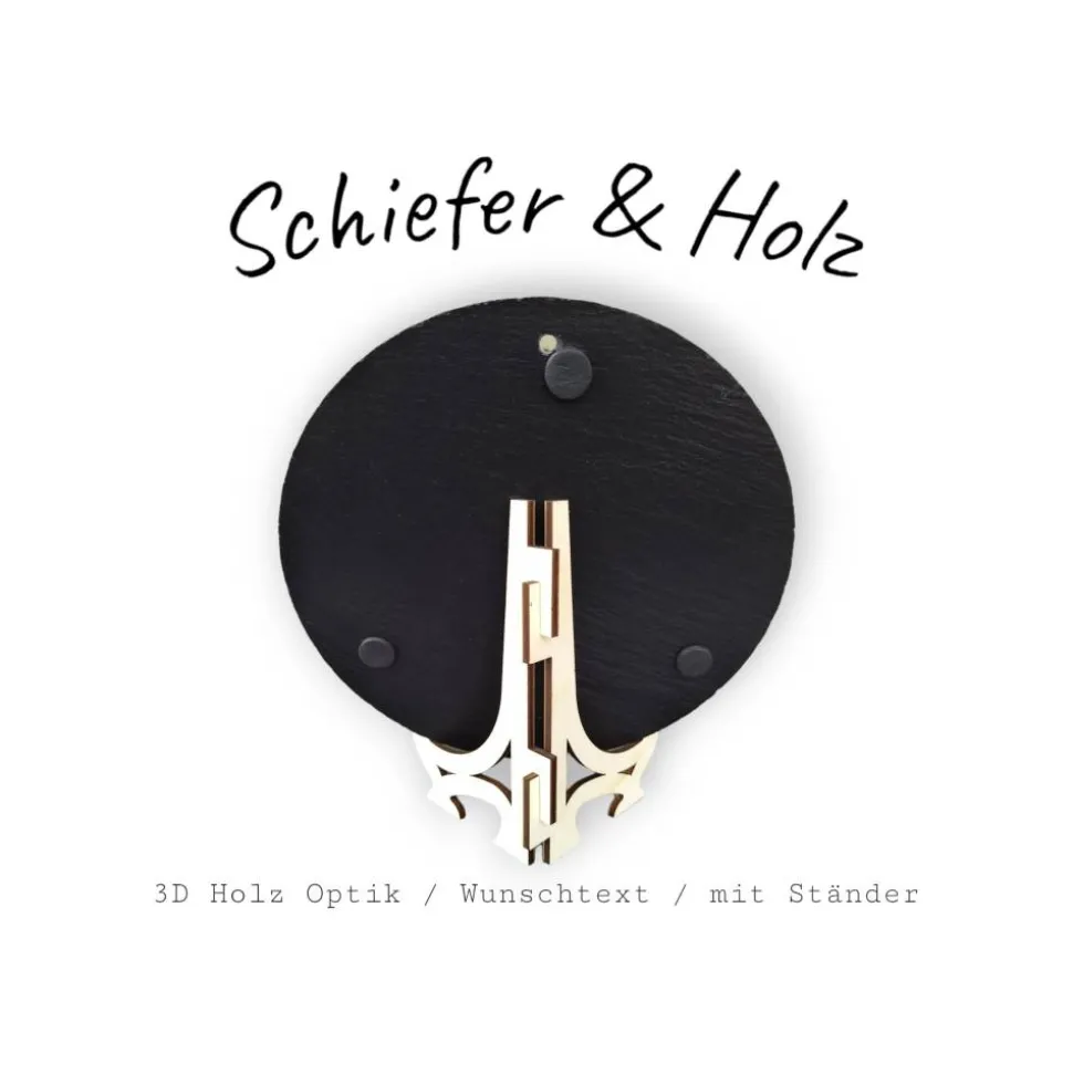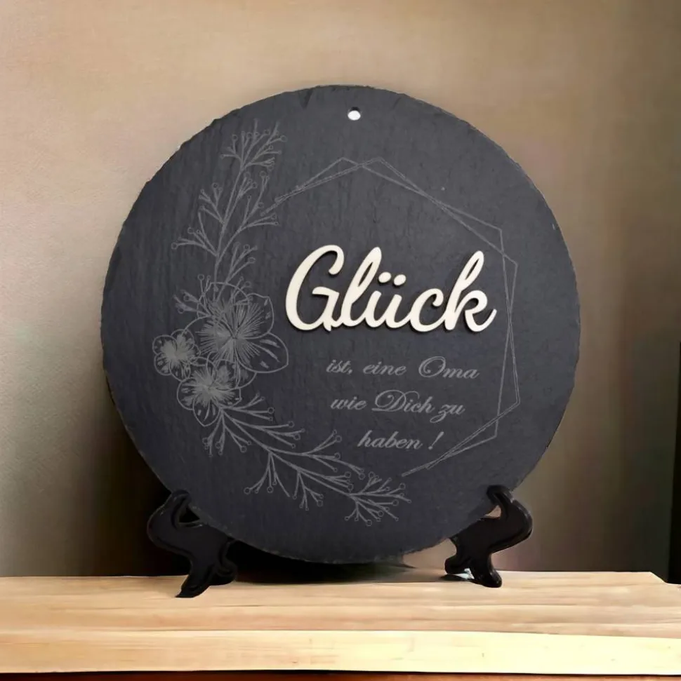 Schiefer und Holz / personalisierbare Schieferplatte mit Gravur und Holzdekor / 3D / Geschenk für Ehefrau, Tochter