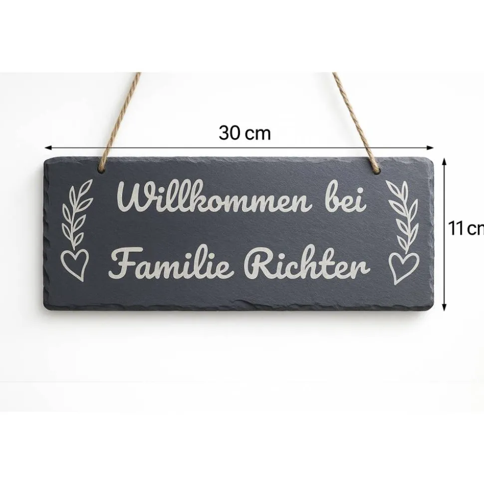 Willkommensschild aus Schiefer – personalisiert mit Familienname (30 × 11 cm)
