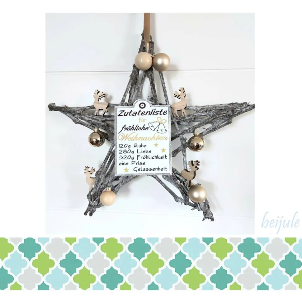 Dieses Weihnachtsrezept für ein fröhliches Weihnachtsfest ist ein echter Hingucker. Es kann als Dekoration genutzt werden oder einem Geschenk den letzten Pfiff geben. Bei den Stickfarben bin ich flexibel, die können frei gewählt werden.