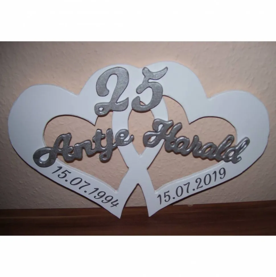 Im Beispiel ist es für eine Silberhochzeit in silber gehalten.
