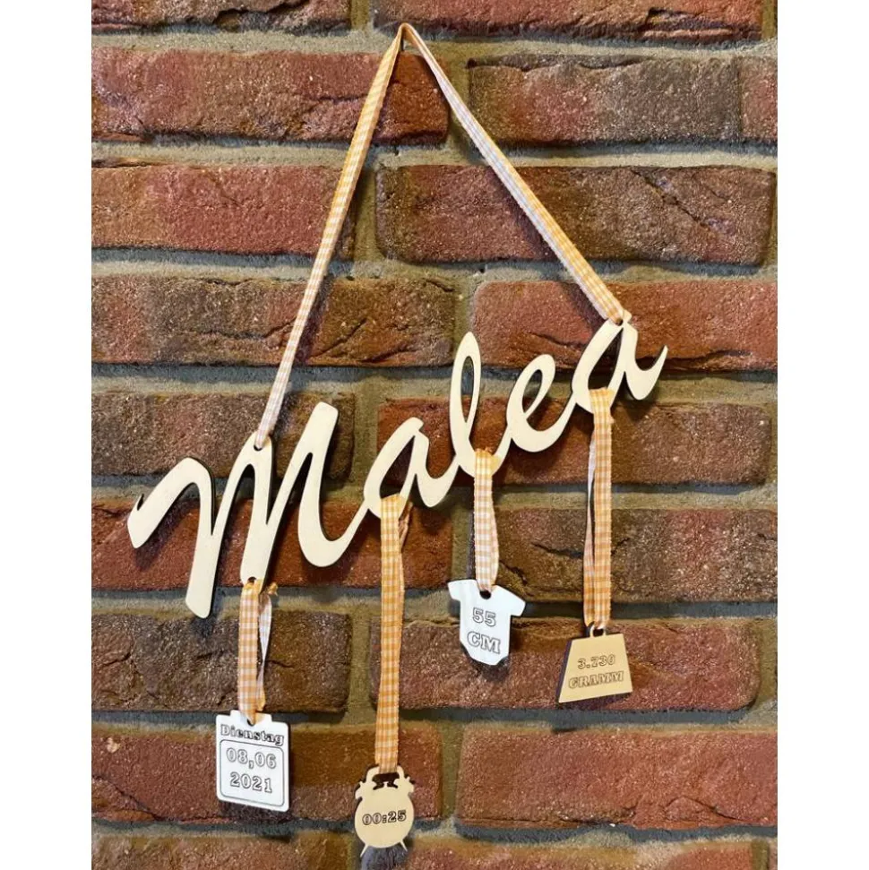 Namensschild zur Geburt mit den Daten: