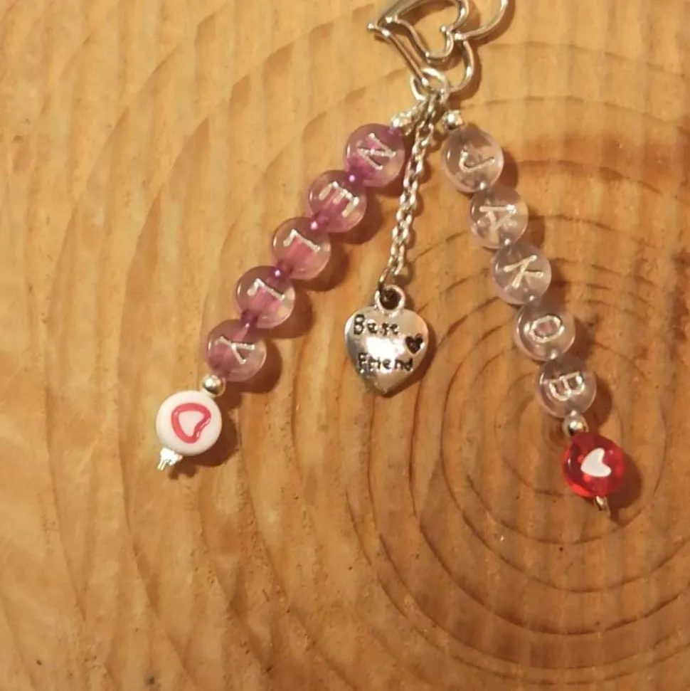 verziert mit Herz-Buchstaben- u. Metallperlen