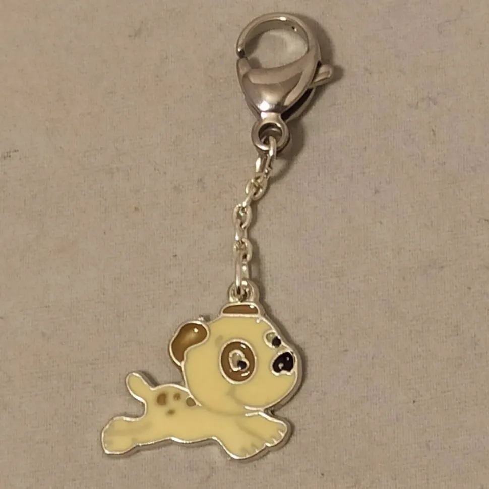 mit „Hund“-Charm (mit Emailleauflage), cremeweiß