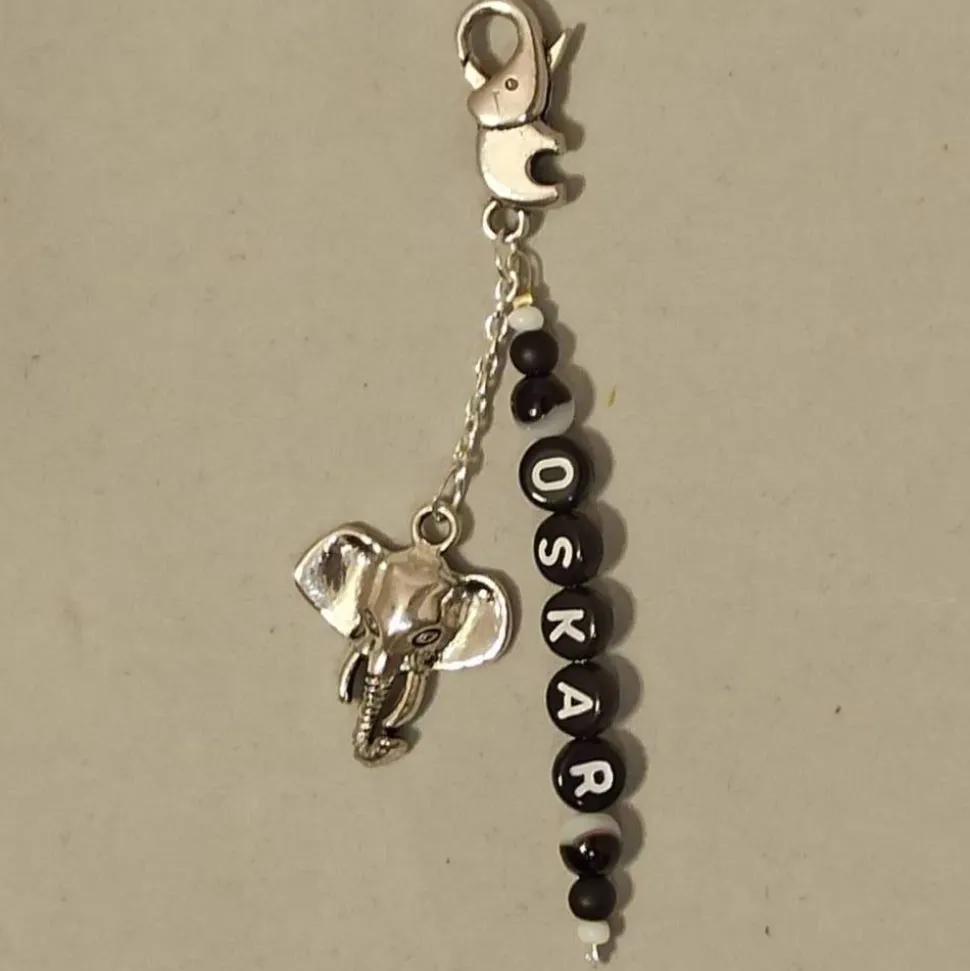 mit einem versilberten „Elefant“-Anhänger und (wahlweise)