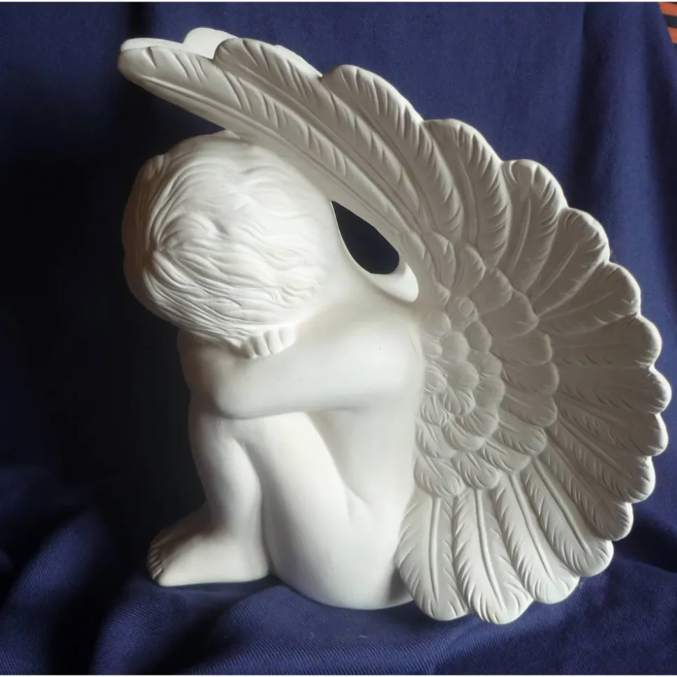sehr natürlich hautfarbig bemalt.Flügel mit einem Hauch Gold versehen.