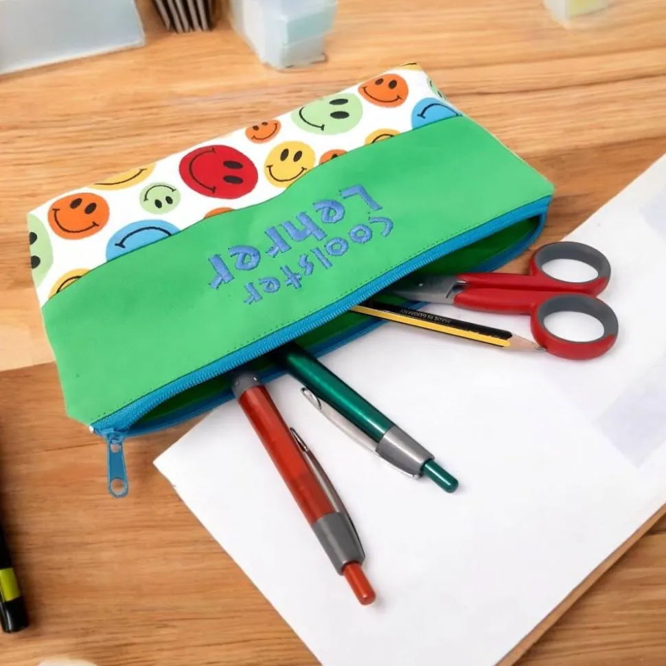 Süßes Statement Mäppchen aus Baumwolle genäht, bestickt mit den Worten: „Coolster Lehrer“. Ein tolles Abschiedsgeschenk für Lehrer, das in Erinnerung bleibt, oder als kleines Dankeschön, sowie auch passend zum Geburtstag. Das Mäppchen ist verstärkt und hat mit seinen 4cm Bodentiefe einen guten Stand.