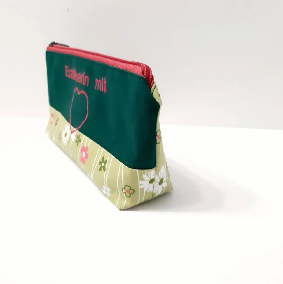 Süßes Statement Mäppchen aus Baumwolle genäht, bestickt mit den Worten: „Erzieherin mit ♥“. Ein tolles Abschiedsgeschenk für Erzieherinnen, das in Erinnerung bleibt, oder als kleines Dankeschön, sowie auch passend zum Geburtstag. Das Mäppchen ist verstärkt und hat mit seinen 4cm Bodentiefe einen guten Stand.