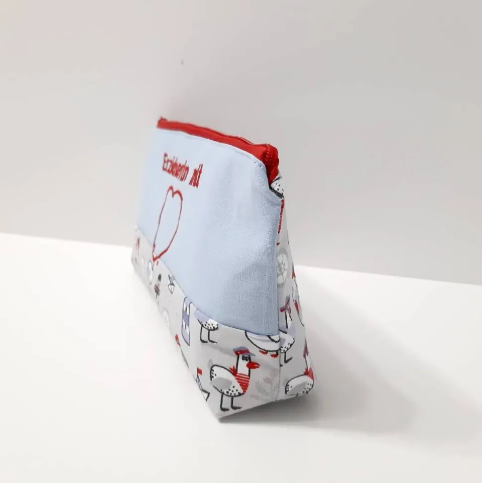 Süßes Statement Mäppchen aus Baumwolle genäht, bestickt mit den Worten: „Erzieherin mit ♥“. Ein tolles Abschiedsgeschenk für Erzieherinnen, das in Erinnerung bleibt, oder als kleines Dankeschön, sowie auch passend zum Geburtstag. Das Mäppchen ist verstärkt und hat mit seinen 4cm Bodentiefe einen guten Stand.