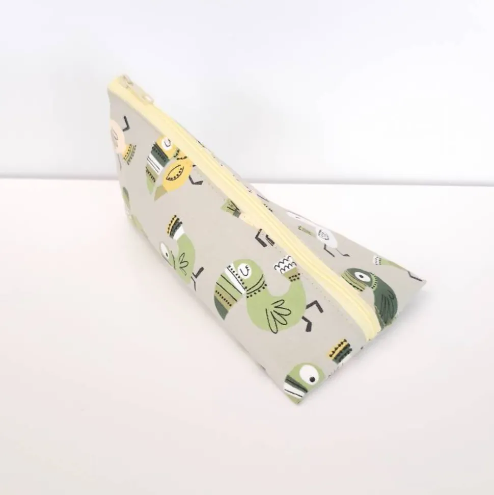 Mäppchen für Stifte oder als Schminktäschchen in trendiger Dreiecksform. Durch die dreieckige Form hat das Federmäppchen einen guten Stand auf dem Tisch. Es passt ordentlich Stifte, Schere, Radiergummi, Anspitzer, Klebestift usw. hinein. Auch ein schönes Geschenk zur Einschulung, Valentinstag, Geburtstag…
