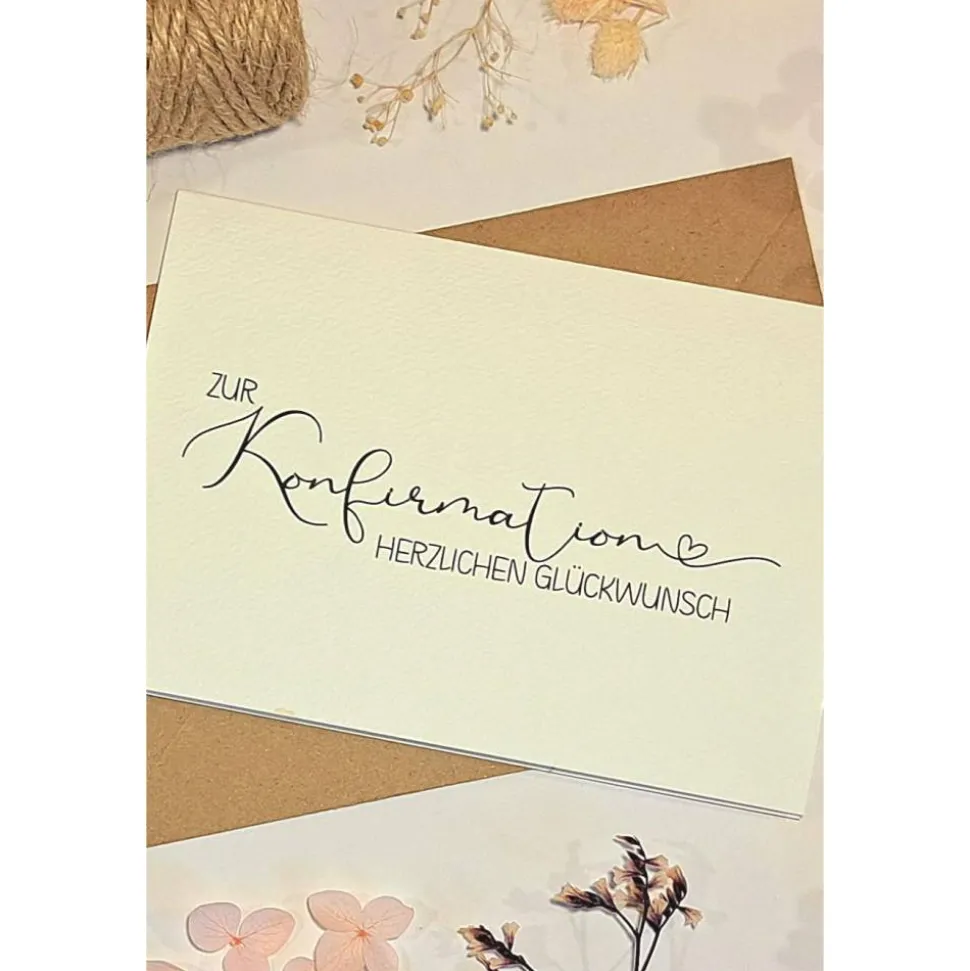 Die hochwertige Karte besteht aus edlem 300g Karton mit feiner Struktur und wird durch einen passenden Umschlag aus Kraftpapier ergänzt. Im Inneren hast Du viel Platz für Deine individuellen Botschaften zur Konfirmation. Egal ob Du gratulierst, einen Gutschein oder Geld verschenkst: Diese Karte unterstreicht Deine Wertschätzung auf stilvolle Weise.