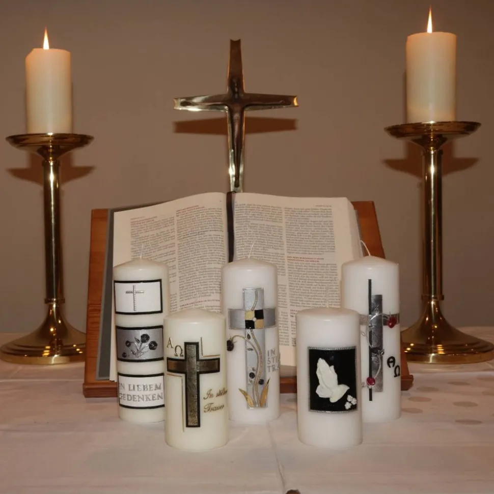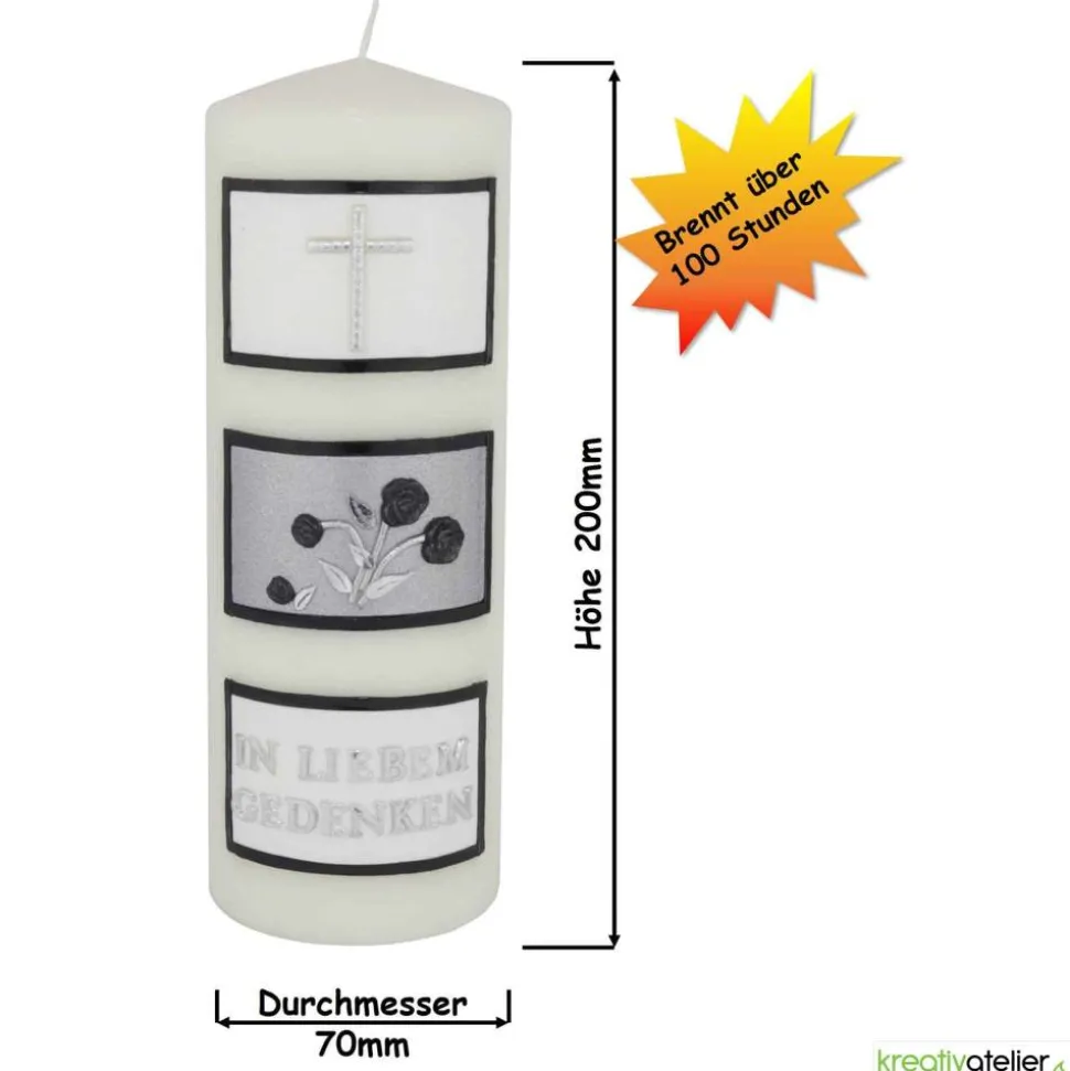 Ob zu Hause oder in der Kirche, diese Trauerkerze ist ein Symbol für das Gedenken und die Erinnerung an einen geliebten Menschen. Mit dieser Kerze können Sie auf eine besondere Art und Weise Ihre Trauer und Ihr Beileid ausdrücken.