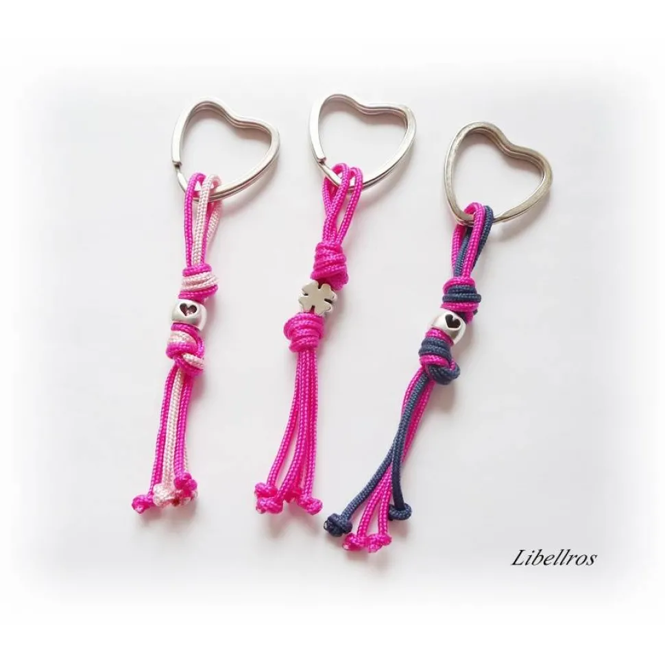 Abgebildet sind die Schlüsselanhänger in rosa/pink, dunkelblau/pink und einfarbig pink