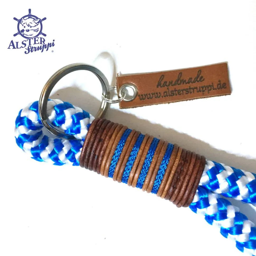 Auf Wunsch ist die passende Hundeleine und/oder das passende Halsband oder auch Handytaue, Pfeifenseile und mehr separat zu erwerben. Halsbänder gibt es in fester Länger, verstellbar mit Leder oder Biothane, sowie mit Zugstop.