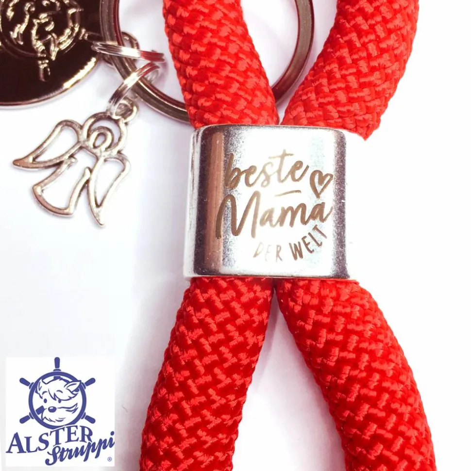 Eine Personalisierung wie z.B. die Aufschrift – Ich liebe Dich – auf einem Lederanhänger ist auf Wunsch erhältlich.