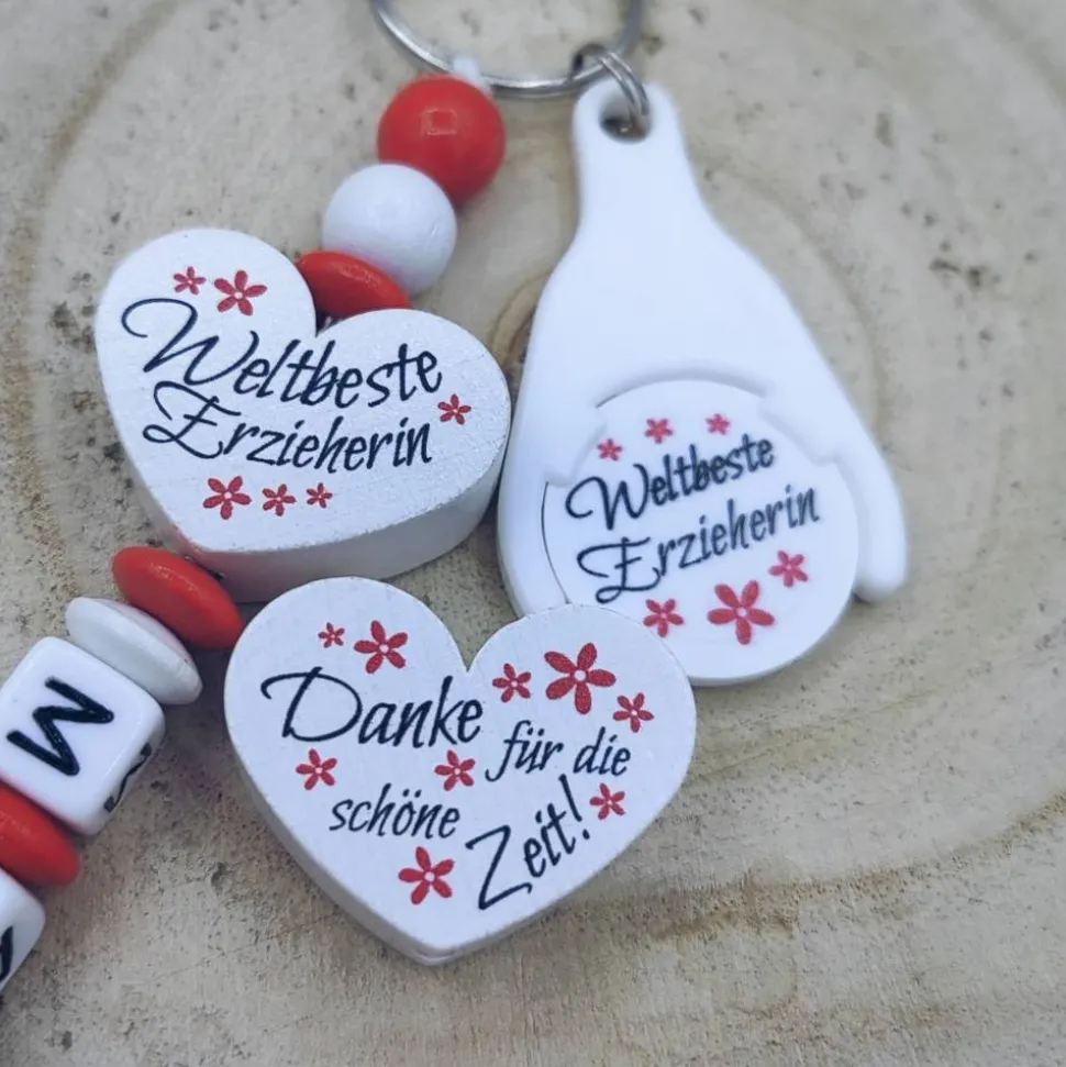 ღ Wende Herz: Weltbeste Erzieherin; und auf der Rückseite mit dem Spruch: Danke für die schöne Zeit in weiß ღ