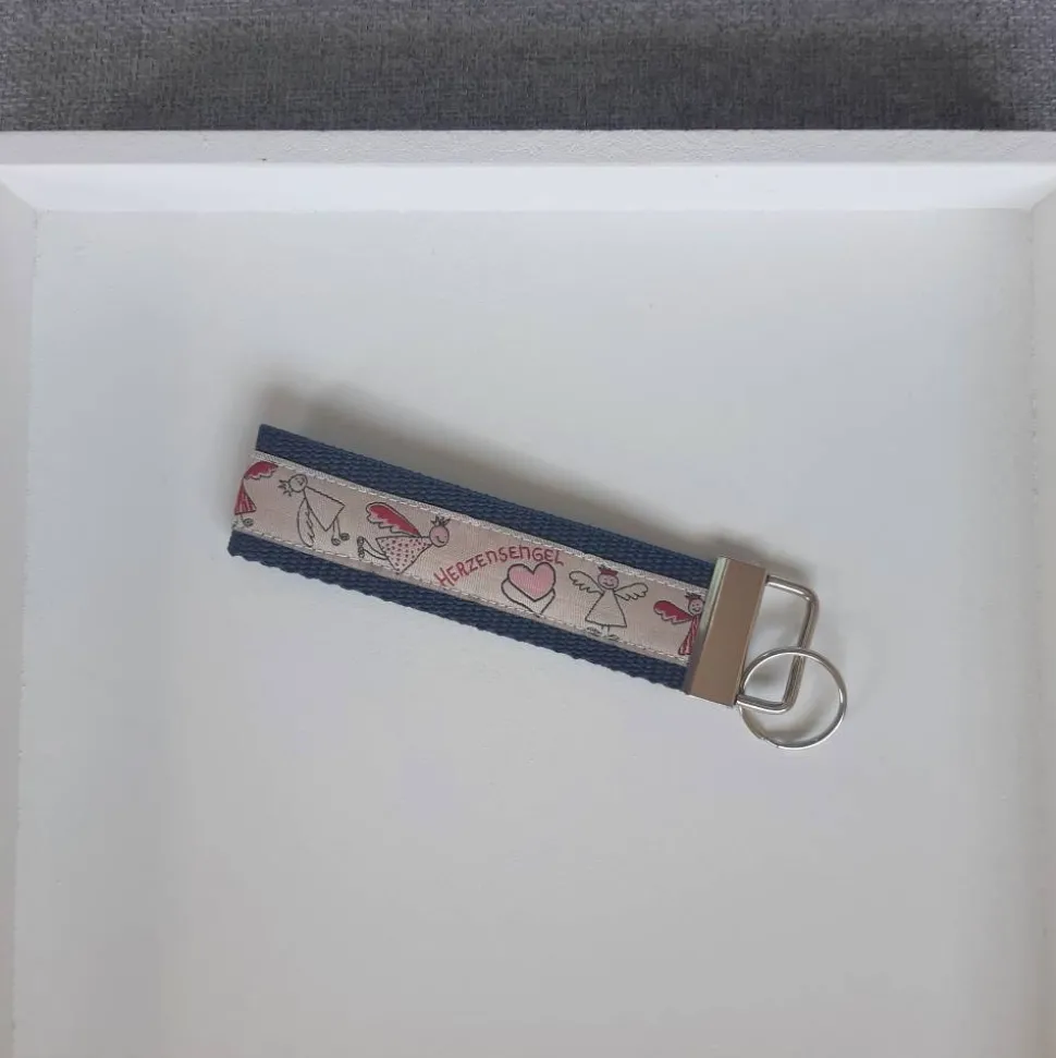 Dieser schöne Schlüsselanhänger ist liebevoll aus Gurtband und Webband von mir genäht worden.