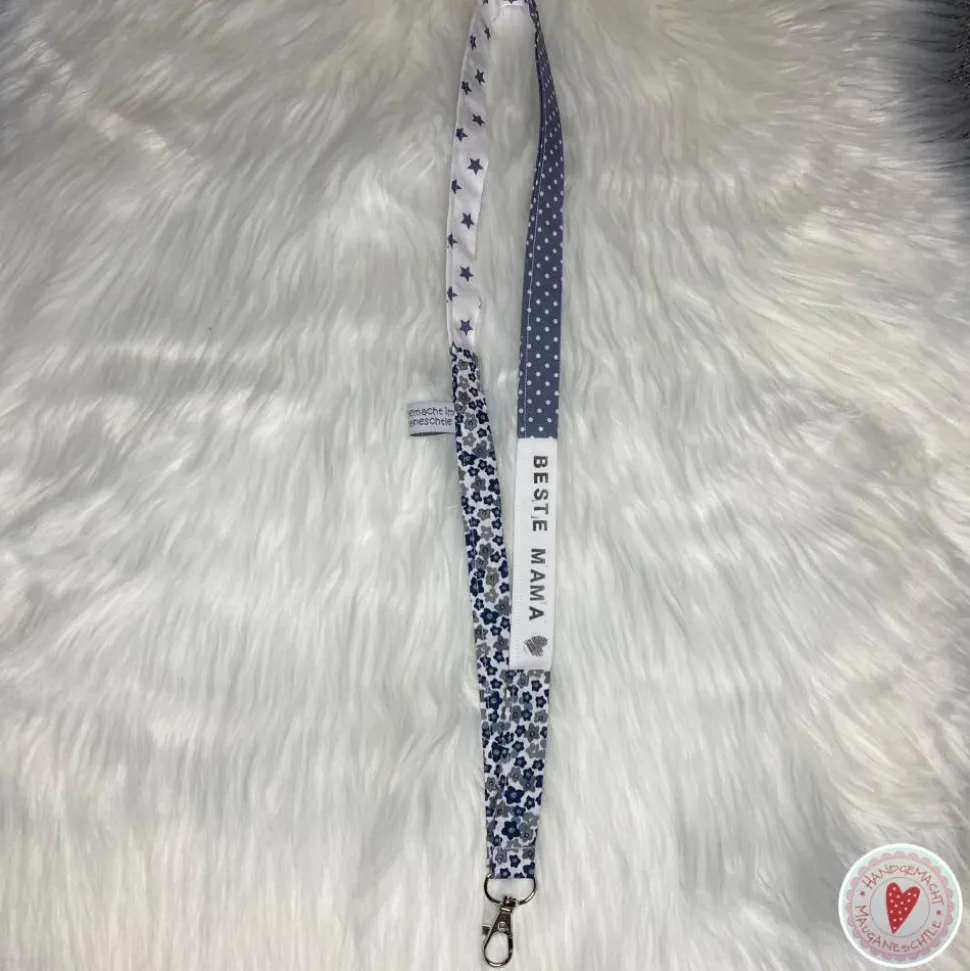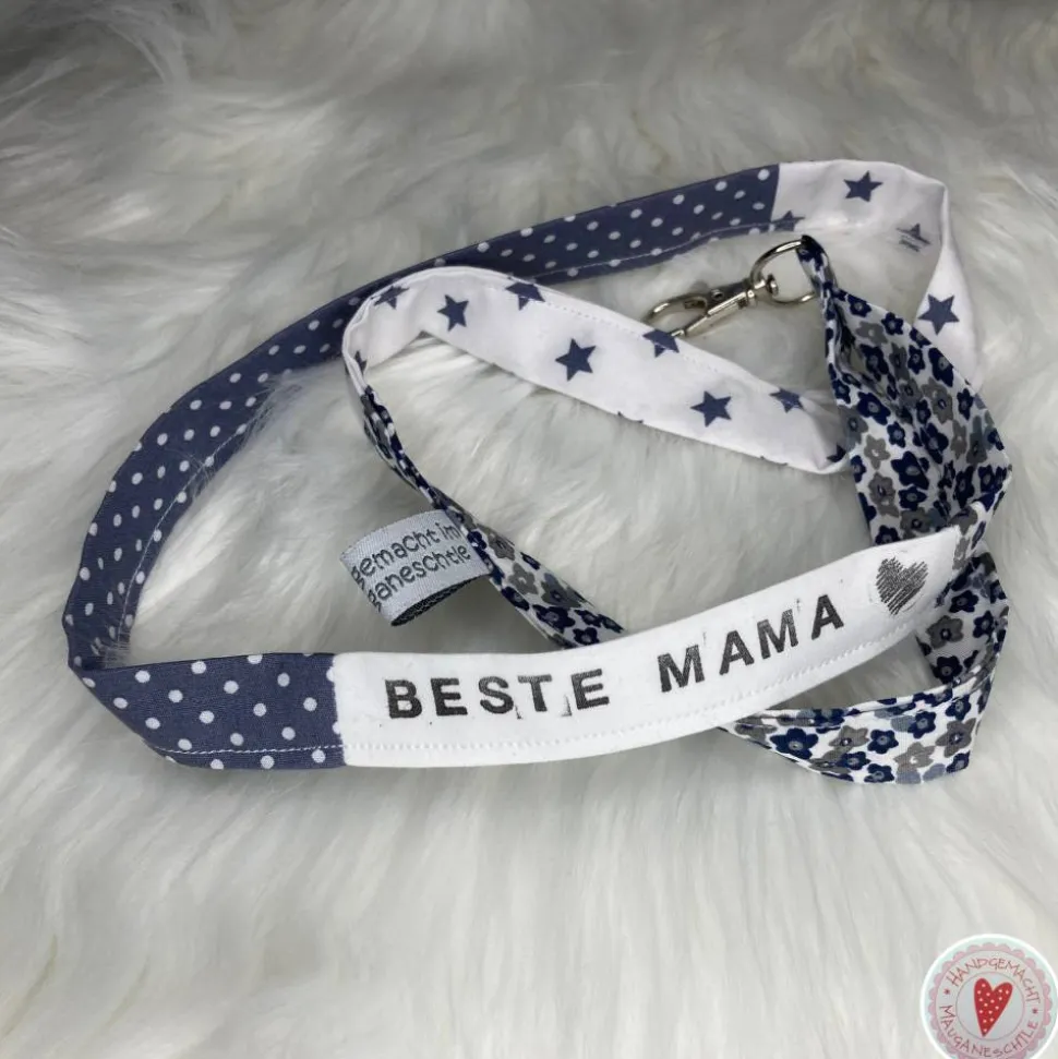 Schlüsselband, genäht aus verschiedenen Baumwollstoffen, bestempelt mit „Beste Mama“