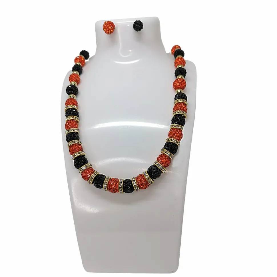 – Halskette Gr. L, Farbe: Rot/Schwarz mit silbernen Elementen oder Orange/Schwarz mit goldenen Elementen