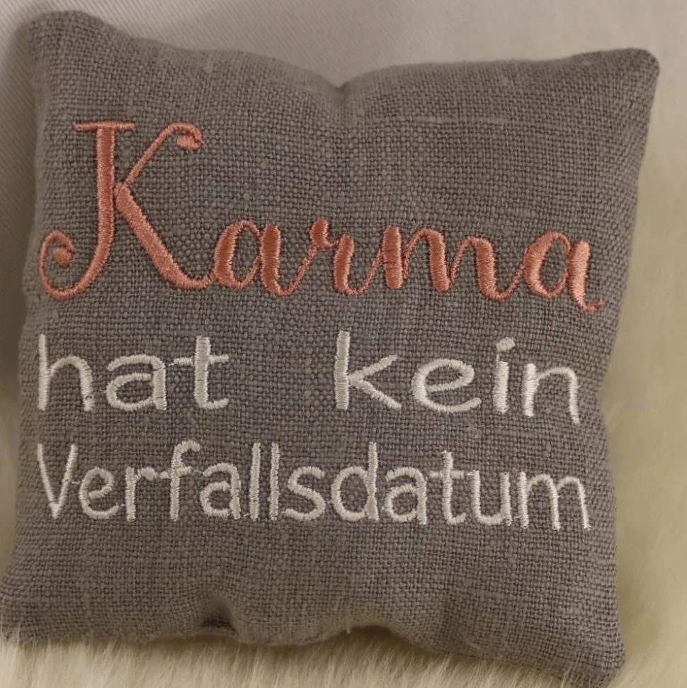 Bestickung: „Karma hat kein Verfalldatum“