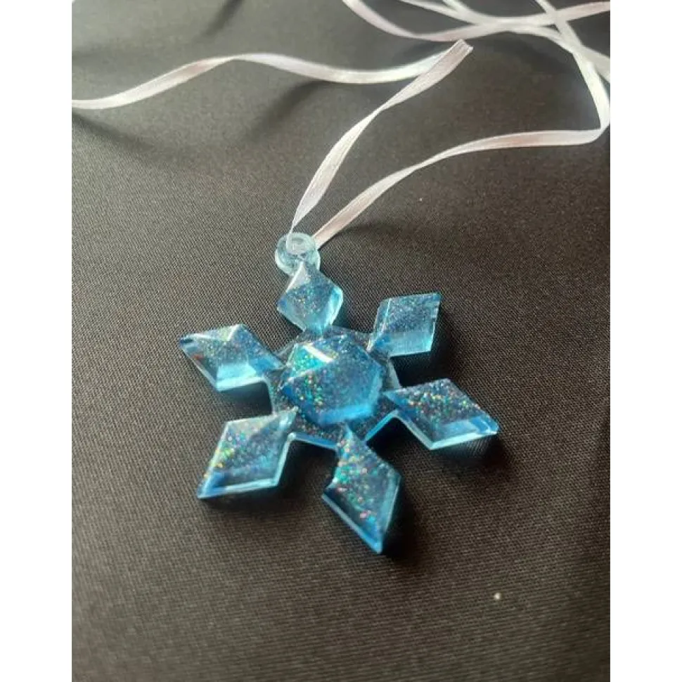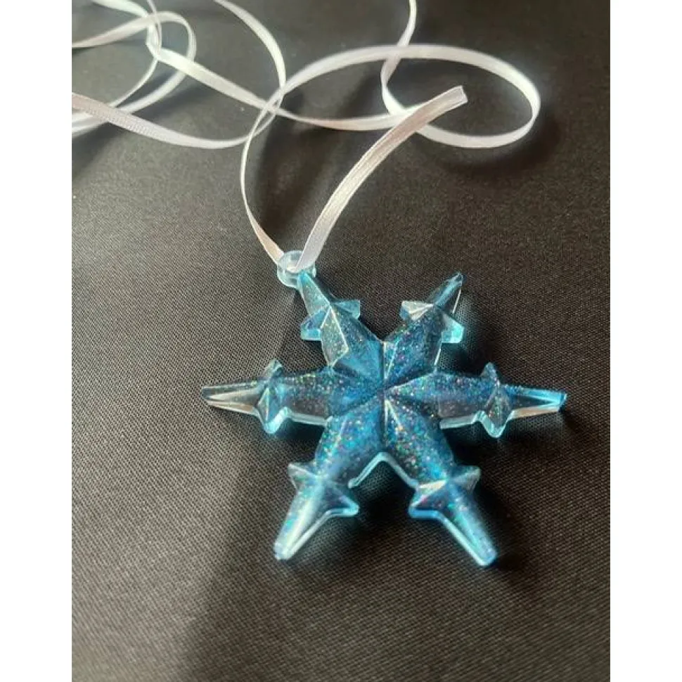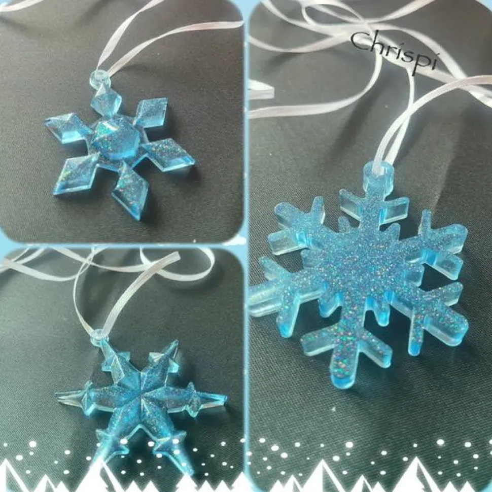 Die Flocken sind im Durchmesser ca. 8 cm groß. Zum aufhängen haben ich ein weißes Band angebracht, dies kann nach Bedarf gekürzt werden.