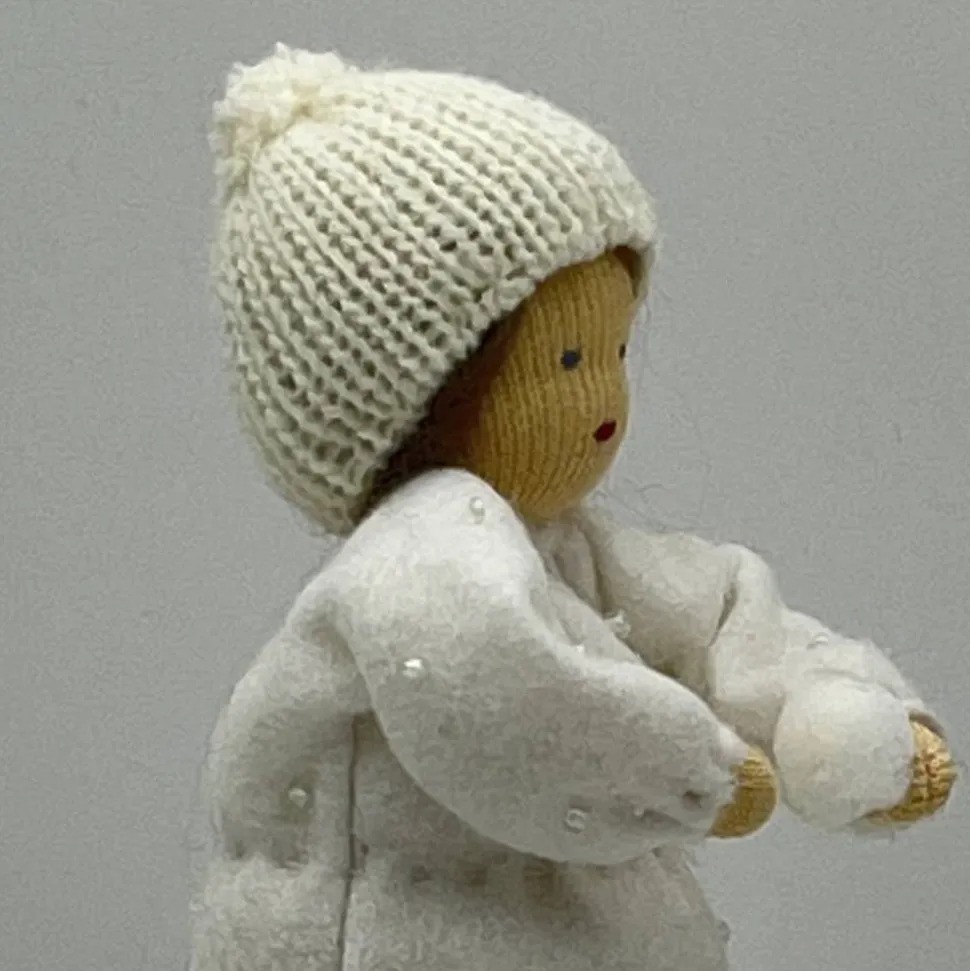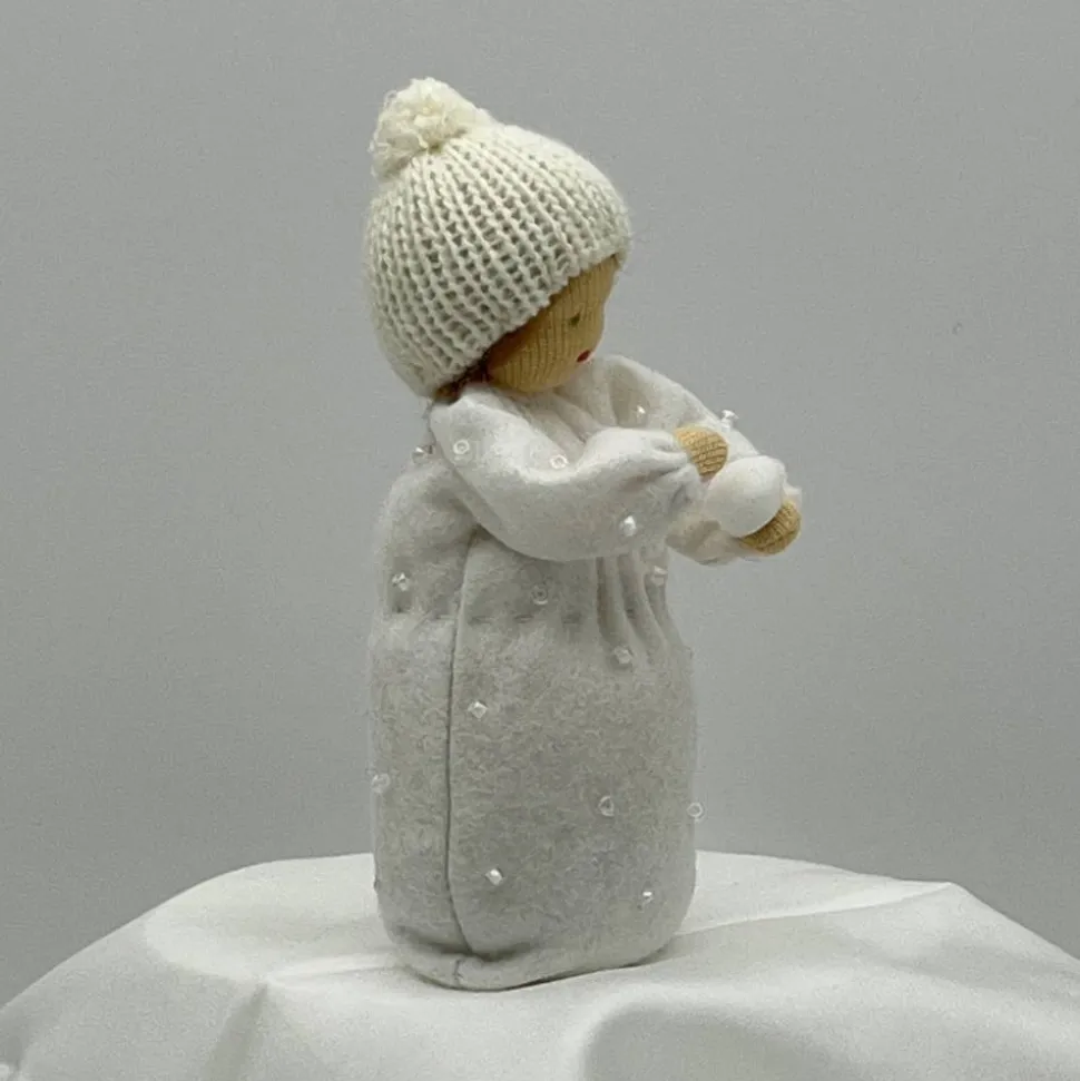 Das Püppchen ist unten geschlossen und für einen guten Stand unten mit feinem Dekokies und der Rest mit reiner Schurwolle gefüllt.