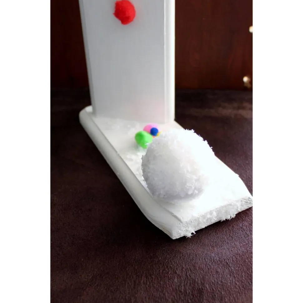 Lustige Schneemann-Figur aus grobem, recyceltem Holz mit Acrylfarben bemalt. Witzige Gestaltung mit handgestricktem Mützchen und Wollschal. Der Fuß ist mit Kunstschnee und einer Kugel dekoriert.