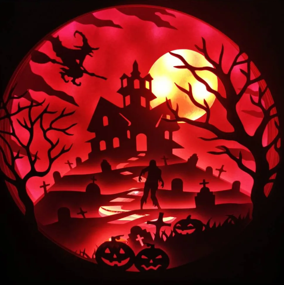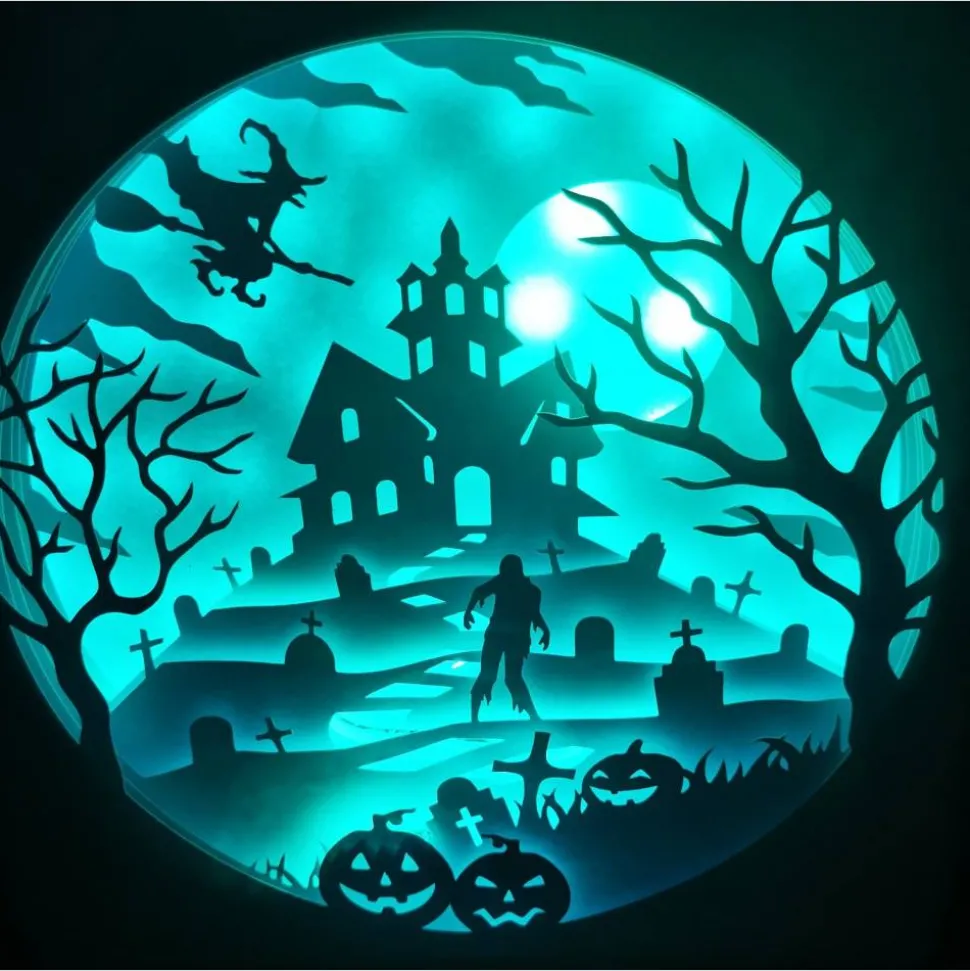 Das Motiv wurde aus zahlreichen Lagen stabilen Cardstock zusammengesetzt, die Led Beleuchtung wahlweise Farbwechsel oder einzelne Farben runden das Bild perfekt ab.