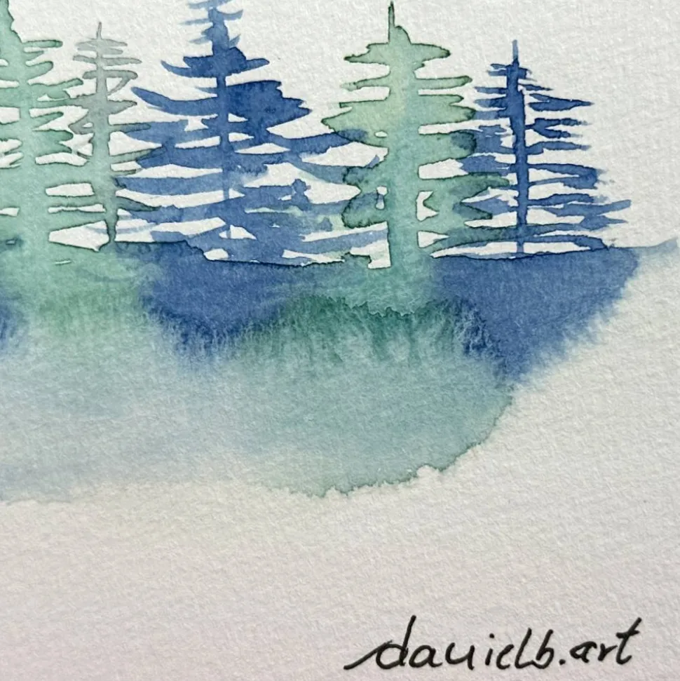 Schöne Weihnachtskarte mit Baumlandschaft – handgemalte Karte (A6) mit hochwertigen Aquarellfarben