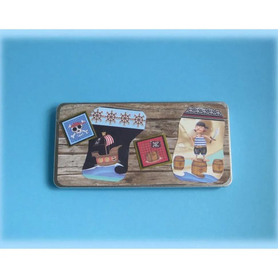 Schokolade sicher verpackt in der Schokodose. Eine schicke Geschenkverpackung, Gutscheinverpackung mit Piratenmotiven, Segelschiff rund ums Thema Pirat