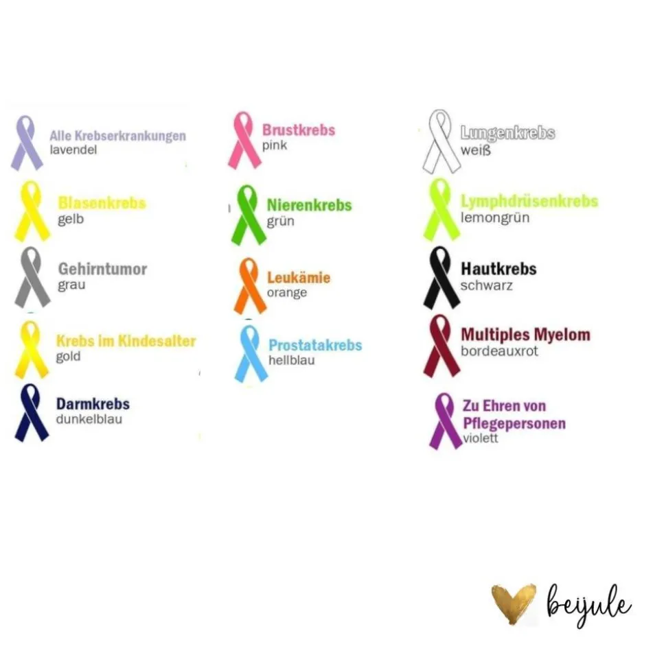 Die Hülle wird aus Filz gefertigt und sorgfältig bestickt. Sie kann in einer Farbe deiner Wahl personalisiert werden. Die häufig verwendeten Schleifenfarben bei verschiedenen Krebserkrankungen dienen lediglich als Inspiration – selbstverständlich sind auch persönliche Lieblingsfarben möglich, um der Botschaft eine ganz individuelle Note zu verleihen.