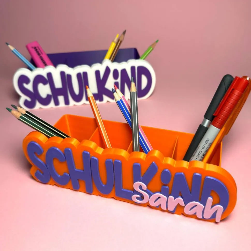 Mit dem personalisierten Schreibtischorganizer im SCHULKiND-Design sorgst du für eine tolle Überraschung zum Schulstart! Der farbige Stiftehalter mit Name ist perfekt für die Schultüte und bringt Ordnung und Freude auf jeden Kinderschreibtisch.