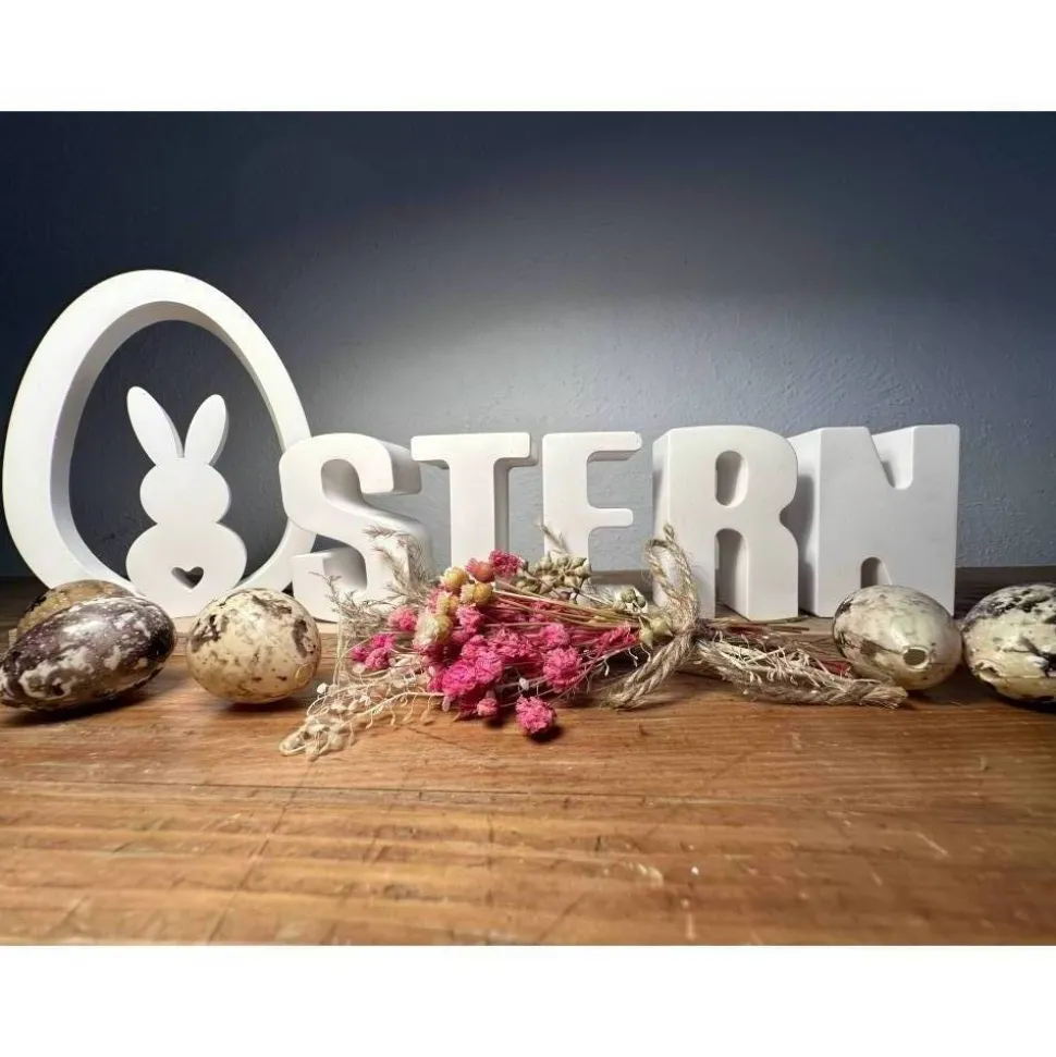 Das Osterei und die Buchstaben sind aus Keraflott gegossen. Luftblasen oder Unebenheiten sind kein Reklamationsgrund. Alle meine Produkte sind von Hand gegossen und Unikate.