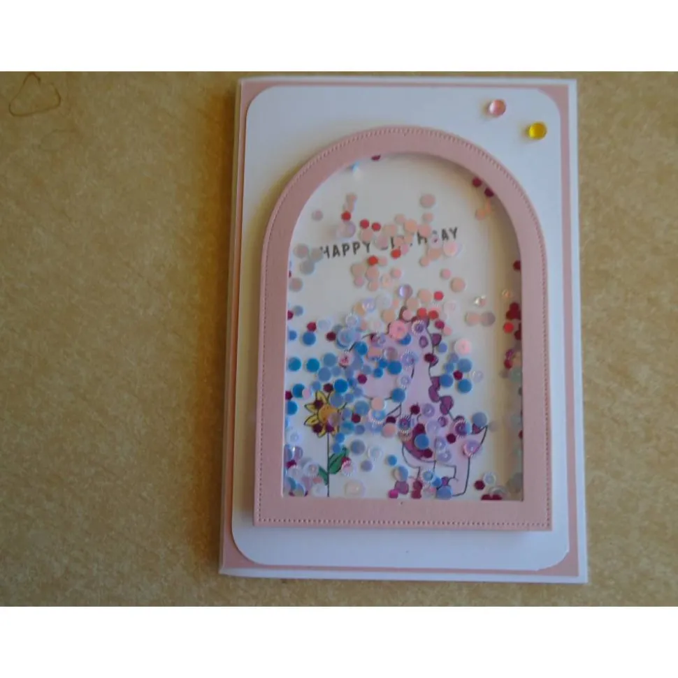 Hier seht ihr eine schöne Geburtstagskarte Glückwunschkarte für Kindergeburtstag Als Schüttelkarte Shaker mit süssen Dino … Für Jungen oder Mädchen