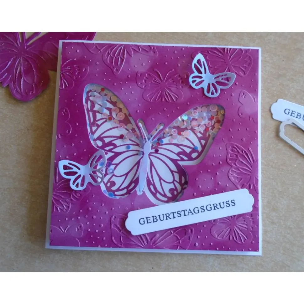 Hier seht ihr eine schöne Geburtstagskarte Glückwunschkarte Grußkarte Als Schüttelkarte Shaker mit süssen Schmetterling …