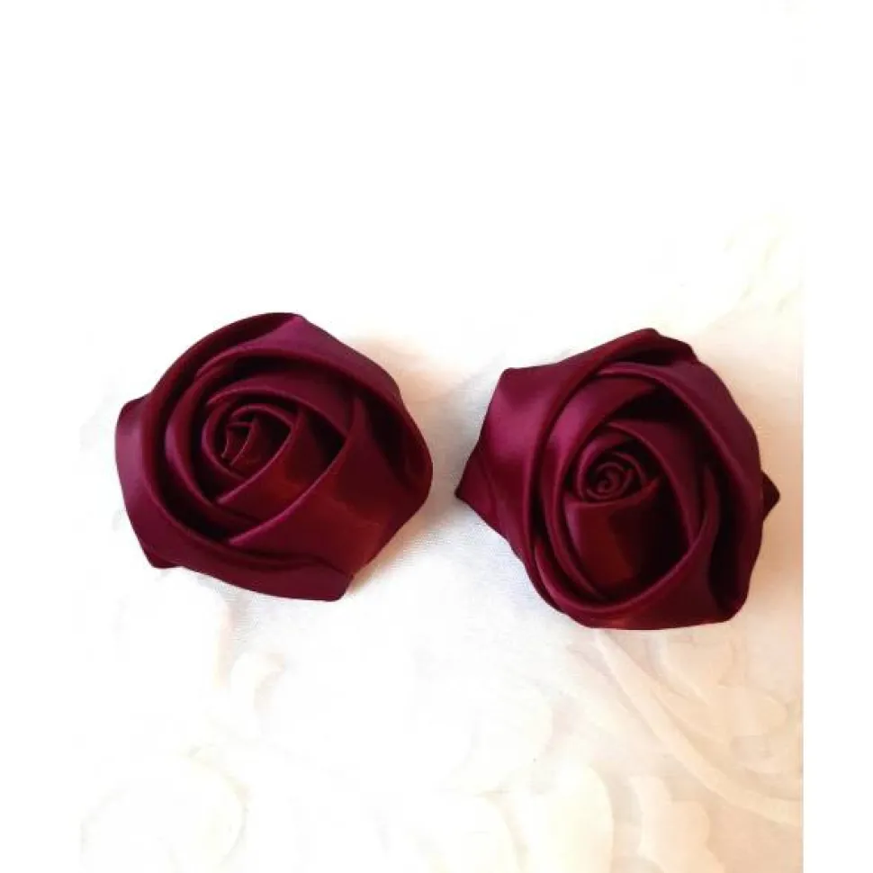Zwei elegante Schuhclips in Form von Blüten aus schimmerndem Satin und einem Schuhclip-Verschluss an der Rückseite.